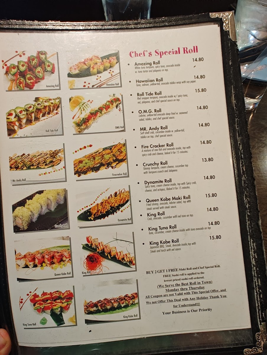 I came here on opening day fully expecting it to be a disaster. Much to my surprise, everything was running smoothly and efficiently. I ordered 3 rolls to go, it was buy 2 get 1 free. I was provided hot tea while I waited which was delicious and such a pleasant surprise. It took about 20 minutes for the rolls, but they were all amazing and definitely worth the wait. I grabbed a menu so I can call ahead next time. The dining room is clean and open, and there is a sushi bar to sit at as well. Staff was super friendly and inviting and I can't wait to go back. Excellent addition to our community!